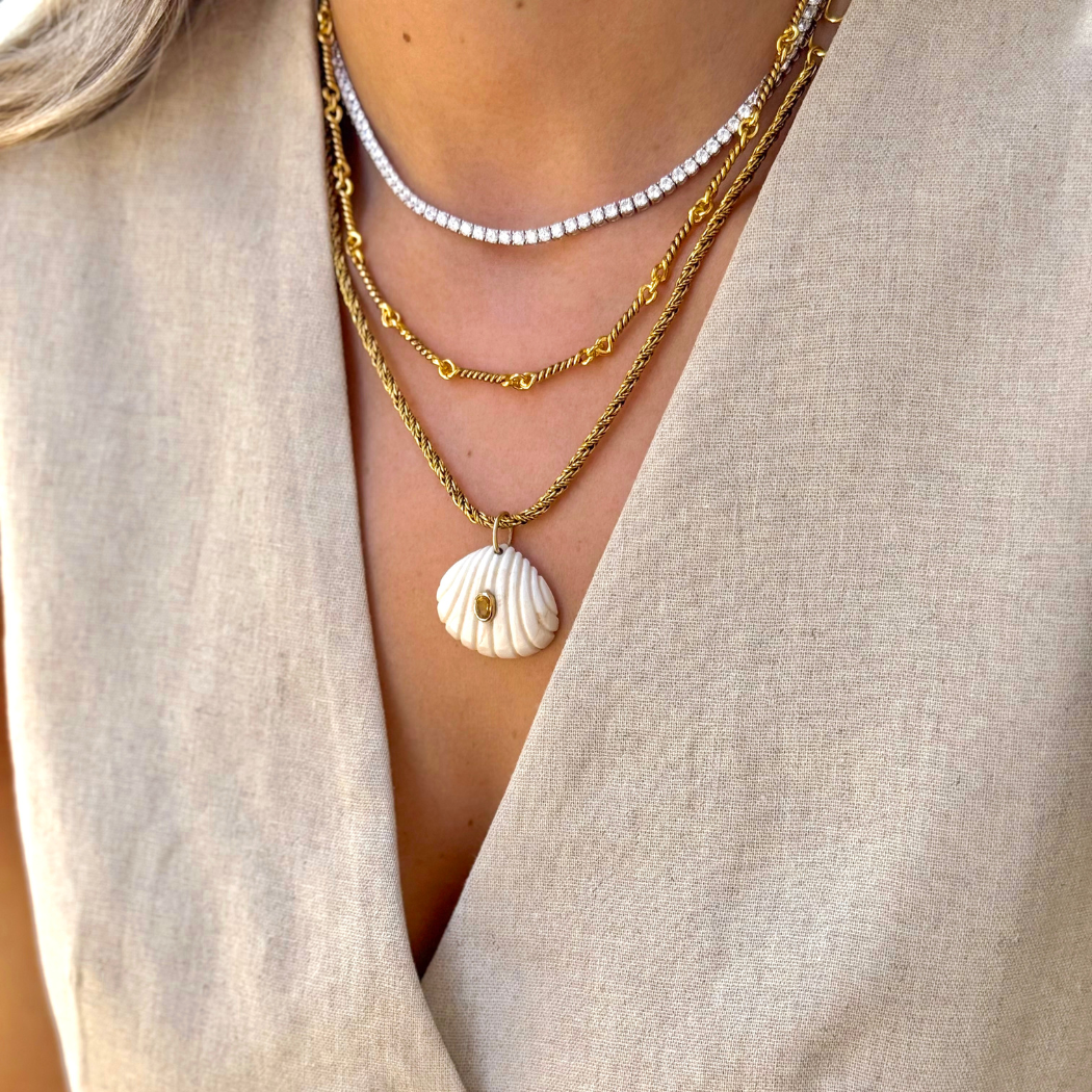 Colar em prata 925 com banho de ródio branco e zircónias brancas.