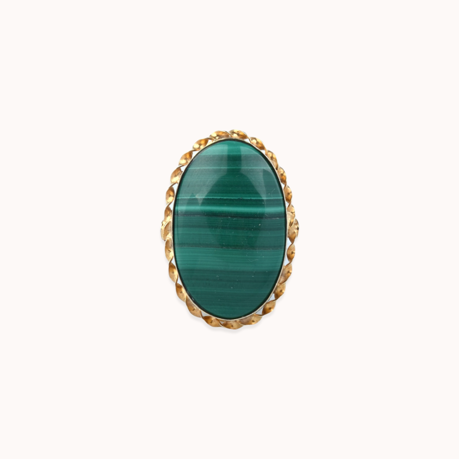 Anel em prata 925 vermeil e malaquite.