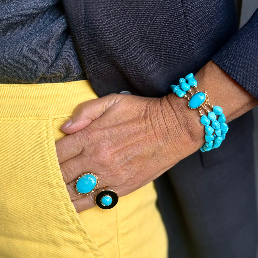 Anel em prata 925 vermeil e turquesa.