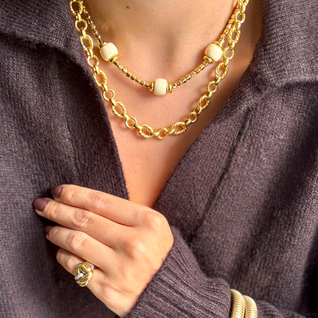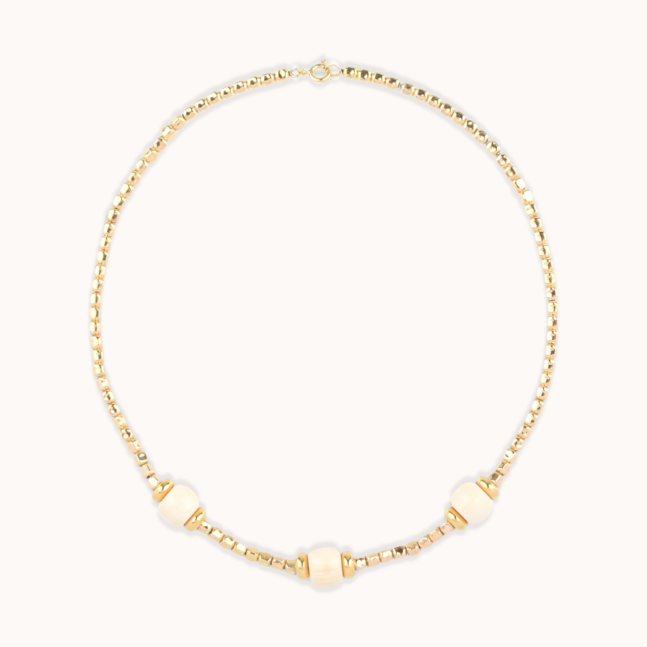 Colar em prata 925 com banho de ouro amarelo e marfim vegetal.
