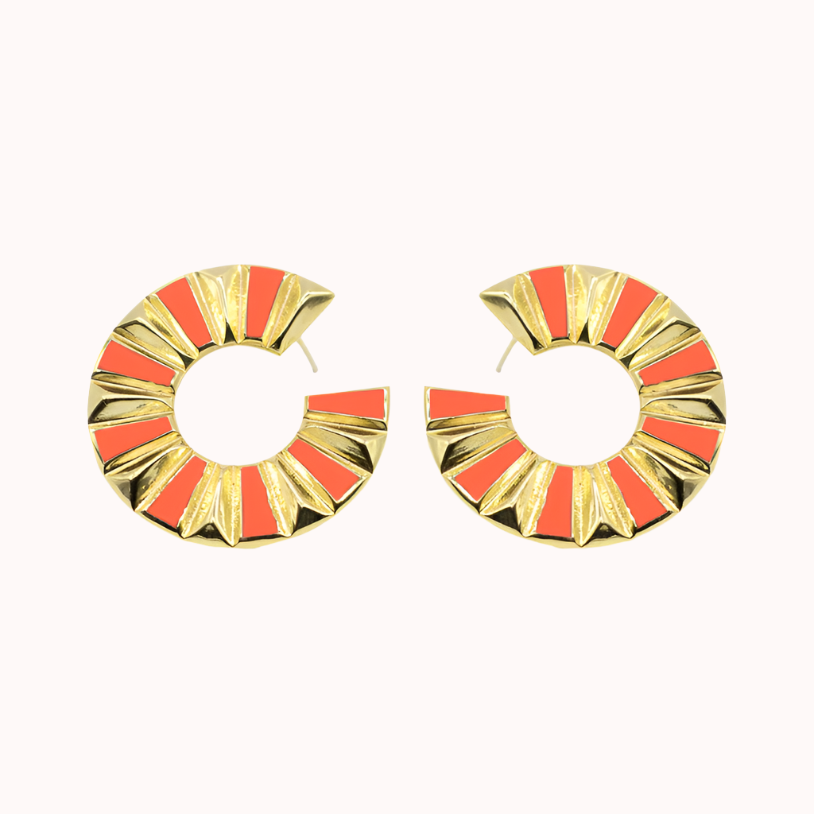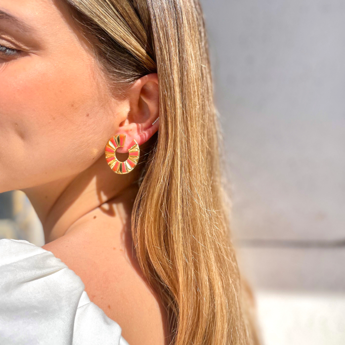 Brincos em prata 925 vermeil e esmalte coral.