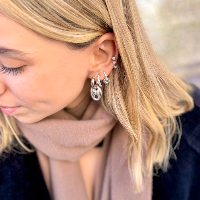 Brinco em prata 925 com banho de ródio branco e zircónias brancas.