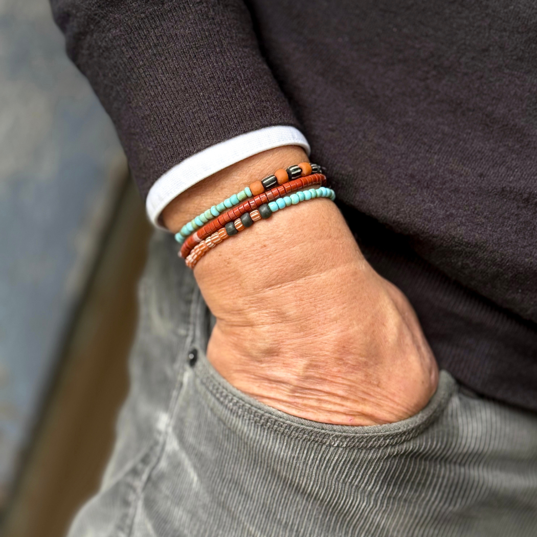 Pulseira de fio de algodão e jaspe com fecho em ágata.
