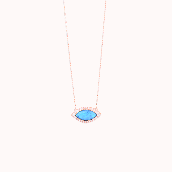 Colar em prata 925 com banho de ouro rosa, opala sintética e zircónias brancas.