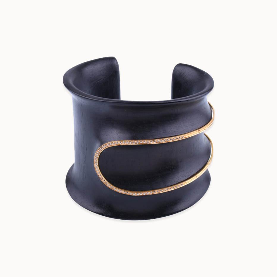 Escrava em ouro 19,2kt, madeira e zircónias brancas.