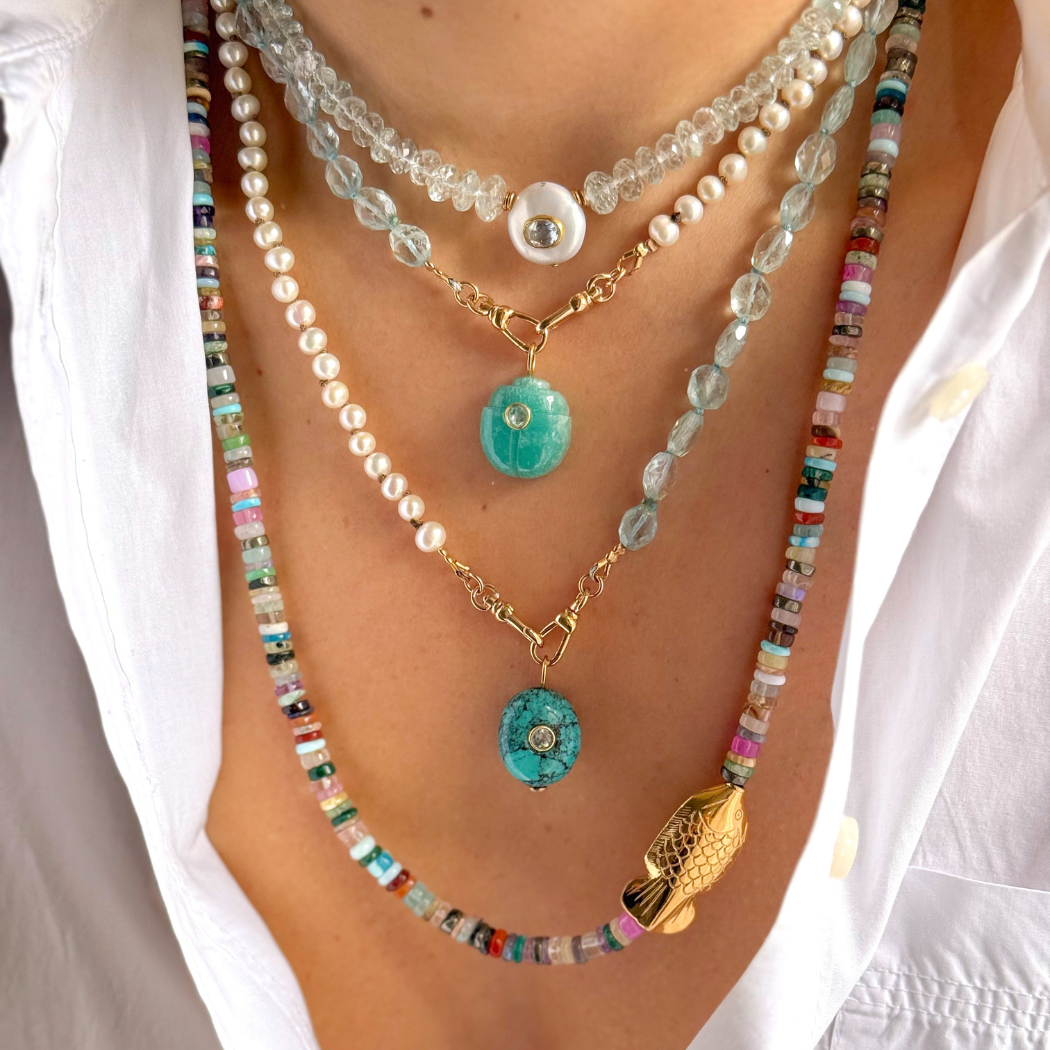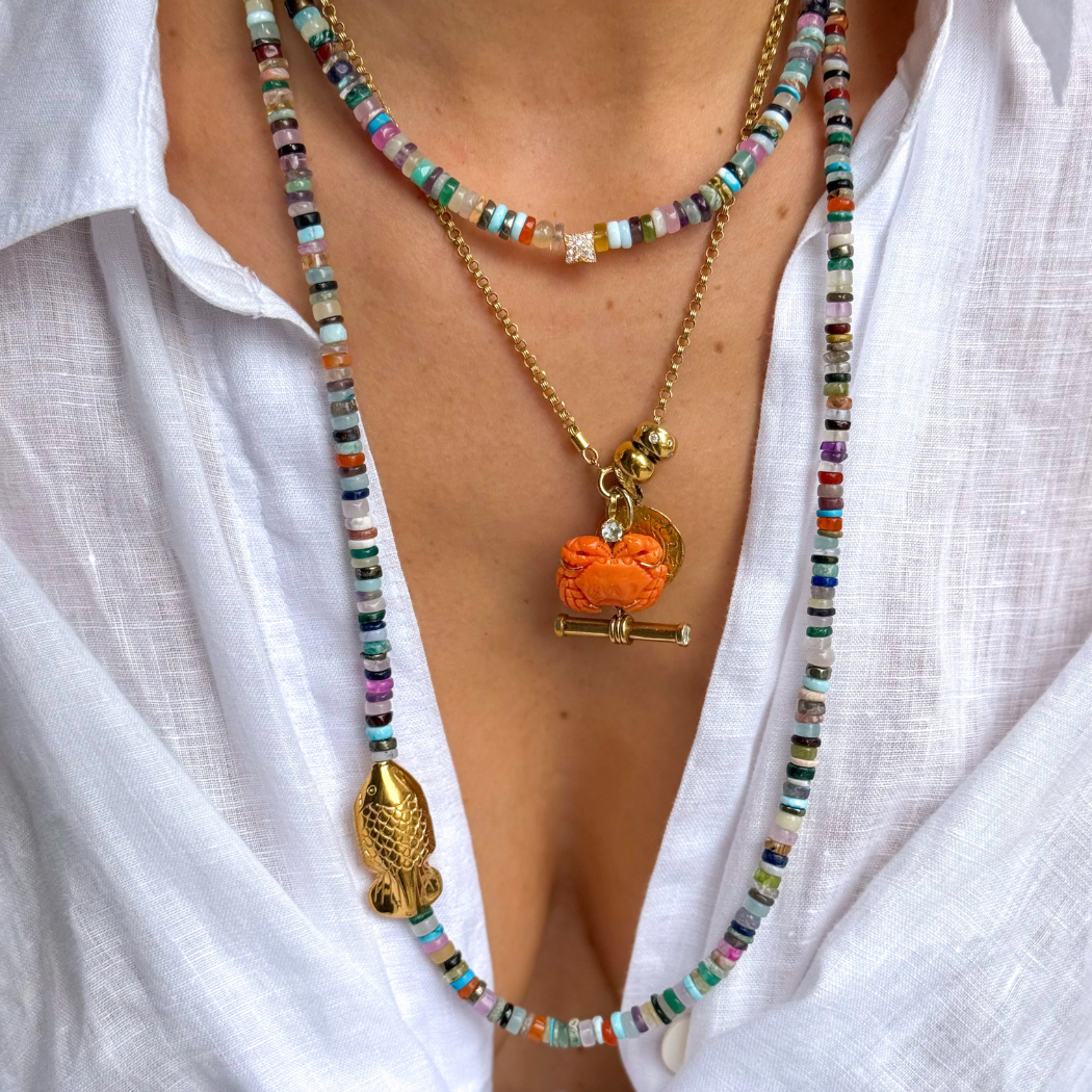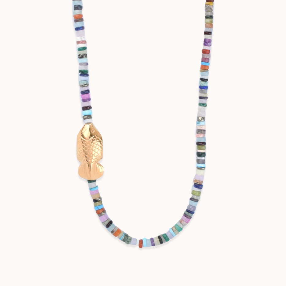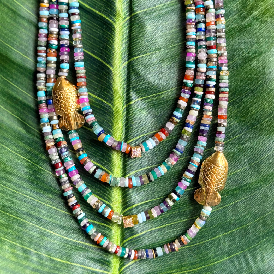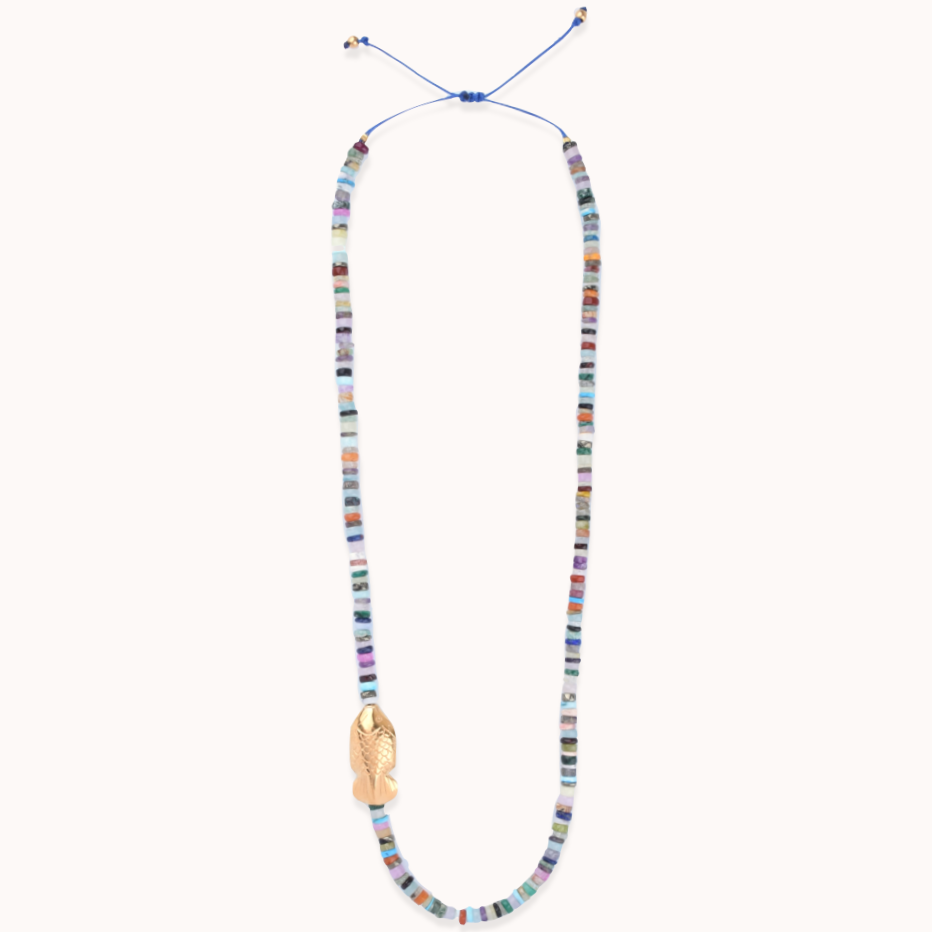 Colar em prata 925 vermeil, fio e contas heishi em pedras naturais.